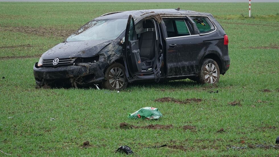 Ein 55-Jähriger hatte sich mit seinem VW überschlagen und war auf dem Feld gelandet. Laut Polizei war der PKW auf regennasser Fahrbahn ins Schleudern geraten.