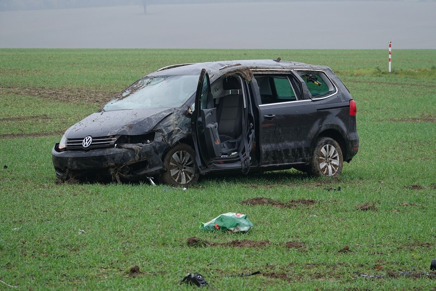 Ein 55-Jähriger hatte sich mit seinem VW überschlagen und war auf dem Feld gelandet. Laut Polizei war der PKW auf regennasser Fahrbahn ins Schleudern geraten.
