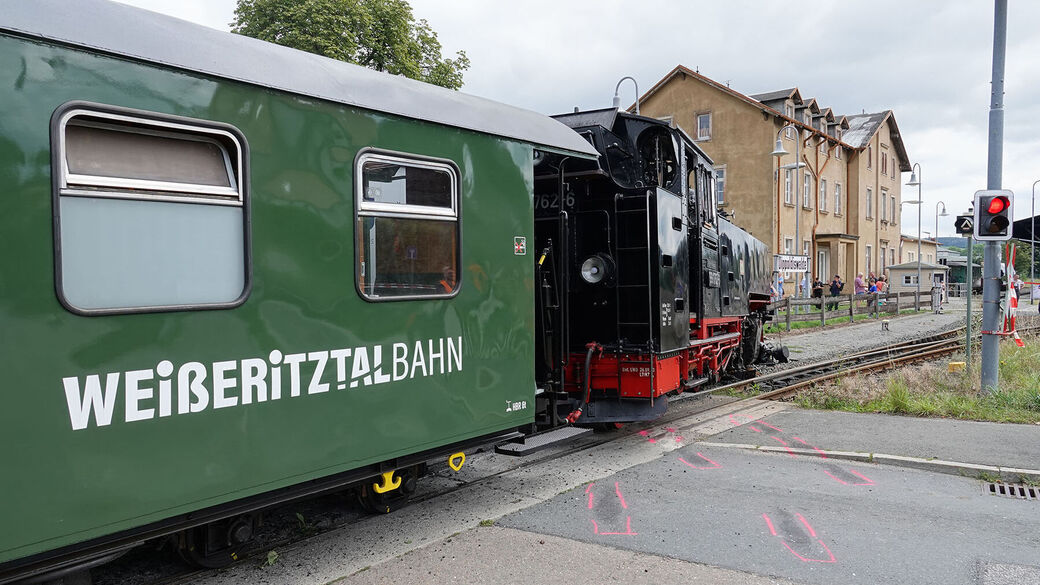 Wie uns Mirko Froß, der Eisenbahnbetriebsleiter der Sächsischen Dampfeisenbahngesellschaft sagte, können die ersten Züge frühestens am Mittwoch rollen.