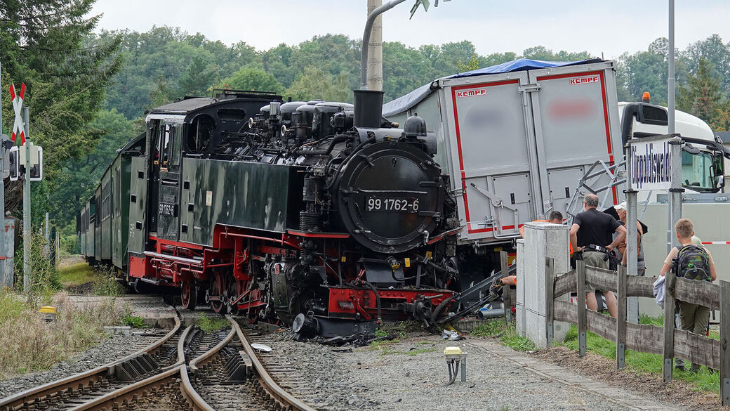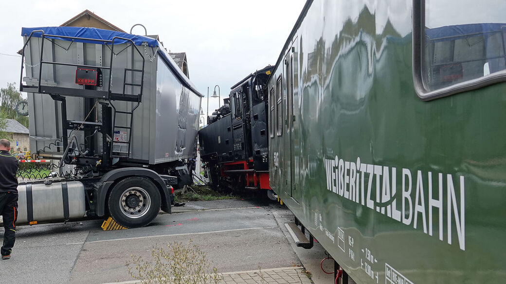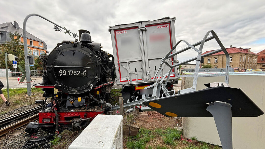 Dippoldiswalde: LKW kracht in Weißeritztalbahn