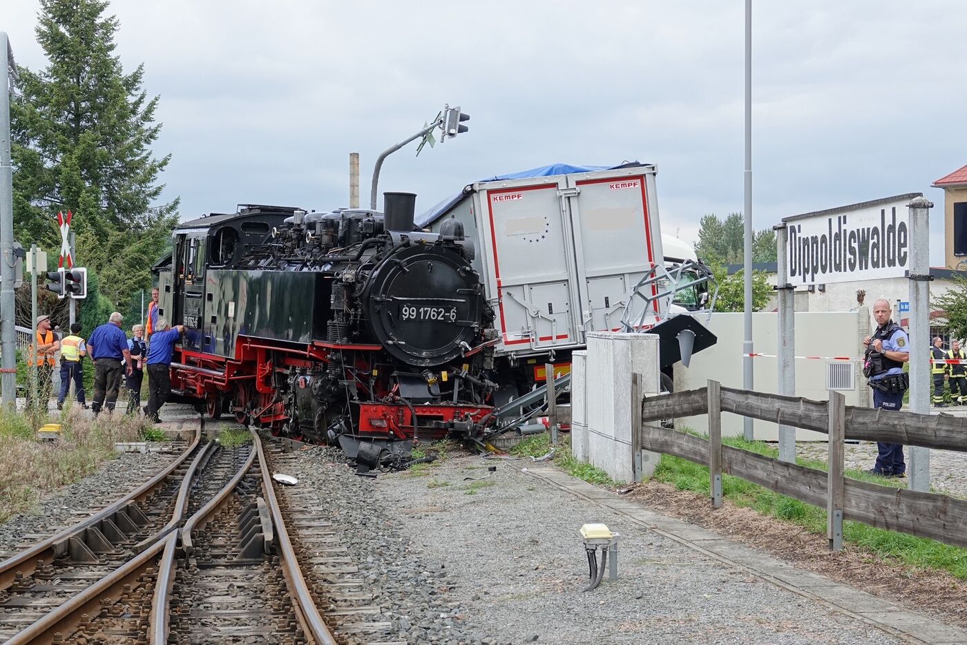 Dippoldiswalde: LKW kracht in Weißeritztalbahn