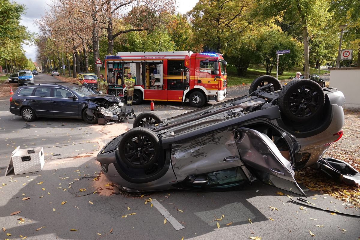 Bei einem schweren Verkehrsunfall an der Kreuzung Reichenbachstraße/Franklinstraße in der Dresdner Südvorstadt sind am Sonntagnachmittag drei Menschen zum Teil schwer verletzt worden.