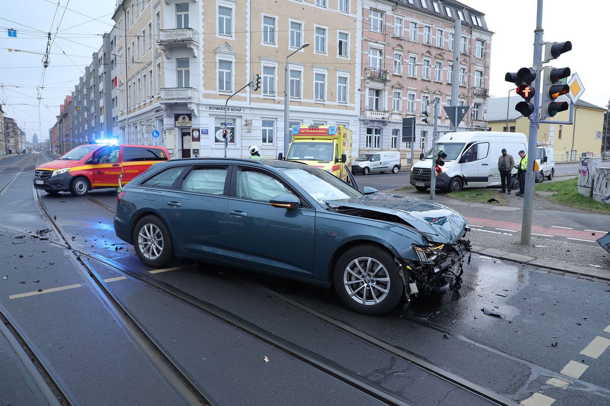 Bei einem Unfall in Dresden-Friedrichstadt sind am Samstagmorgen (7:40 Uhr) drei Menschen verletzt worden. Wie die Polizei mitgeteilt hat, waren an der Kreuzung Schäferstraße/ Hamburger Straße/ Waltherstraße zwei Autos zusammengestoßen - ein Audi A6 und ein Mercedes Vito. Beide Fahrzeuge wurden dabei schwer beschädigt. Sie mussten abgeschleppt werden.