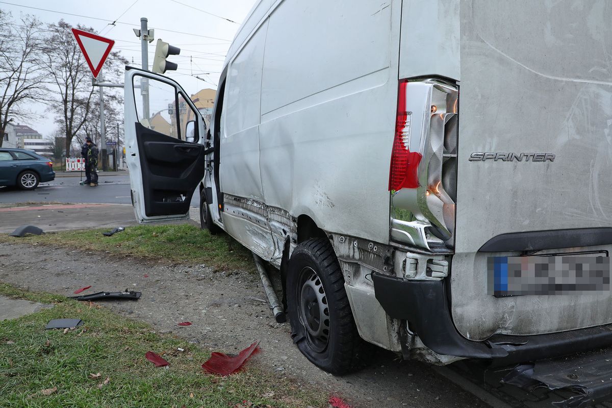 - Dieser Transporter kollidierte mit dem Audi.