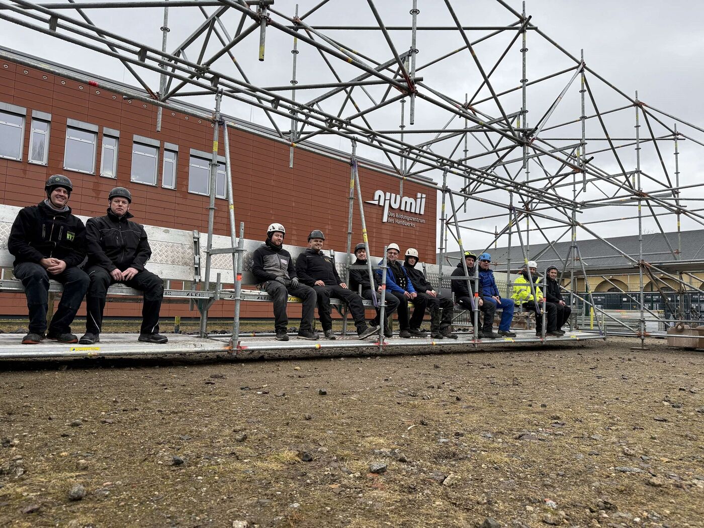 Zehn angehende Gerüstbau-Meister haben die einmalige Konstruktion erschaffen. Zwei Tage haben sie dafür gebraucht. Vorausgegangen waren umfangreiche Planungen für die richtige Statik.