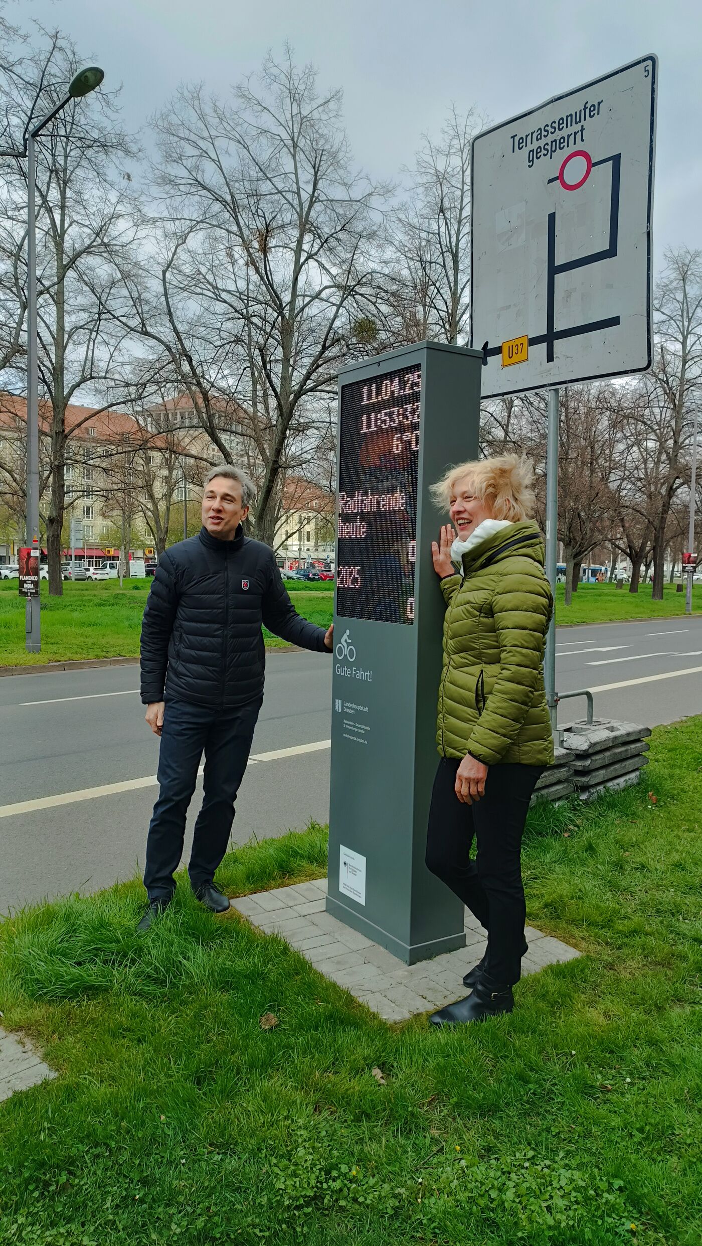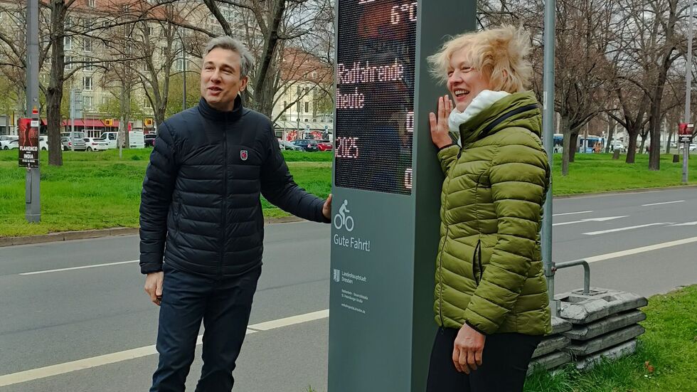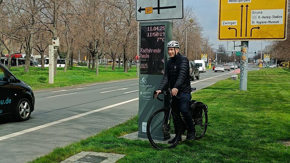 Auf der St. Petersburger Straße steht nun ein sogenanntes „Fahrradbarometer“. In beiden Richtungen wird mit einer Zählschleife im Boden die Menge der Radfahrer gezählt. Die Stadt will somit herausfinden, wie viele Radler es in Dresden gibt.
