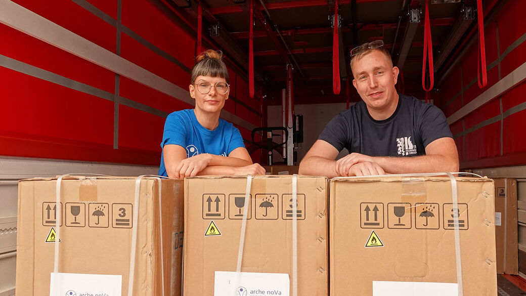 So wurden am Samstagmorgen 30 Bautrockner in die tschechische Stadt geschickt. Nico Merker und Mario Paul von der Stadtteilfeuerwehr Kaitz beluden am Samstag den Gerätewagen Logistik der Feuerwehr mit den Bautrocknern und Ersatzteilen und starteten dann Reise in das sächsische Nachbarland. Die Bautrockner konnte die „arche noVa“ zu Verfügung stellen.
