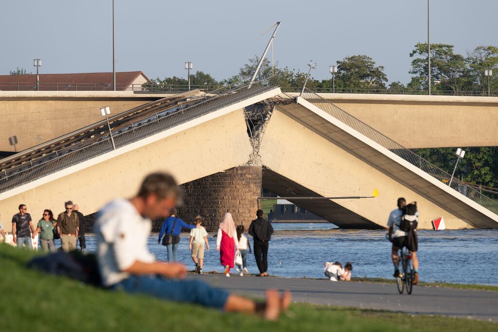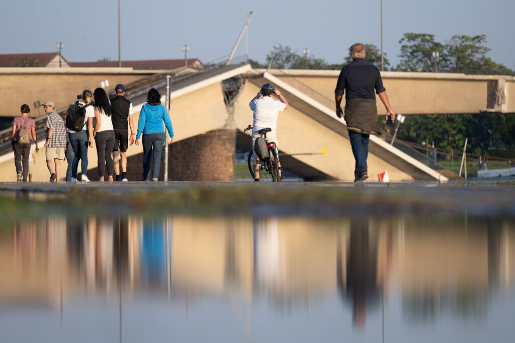 Noch immer liegen Teile der eingestürzten Carolabrücke im Wasser. Diese verfälschen den Wasserstand am Pegel der Augustusbrücke allerdings nicht. Der Leiter des Umweltamtes, René Herold sagte, die Strömungsgeschwindigkeiten bleiben den aktuellsten Prognosen zufolge "beherrschbar".