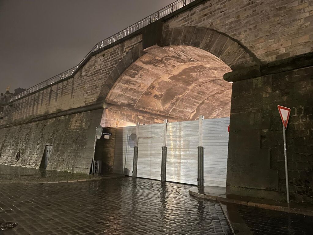 Das Flutschutztor in der Innenstadt Pirna wurde in der Nacht zum Montag von der Feuerwehr geschlossen – Wegen der Gefahr der Überflutung. Das Tor befindet sich an der Bahnunterführung Klosterstraße / Ecke Rosa-Luxemburg-Straße.