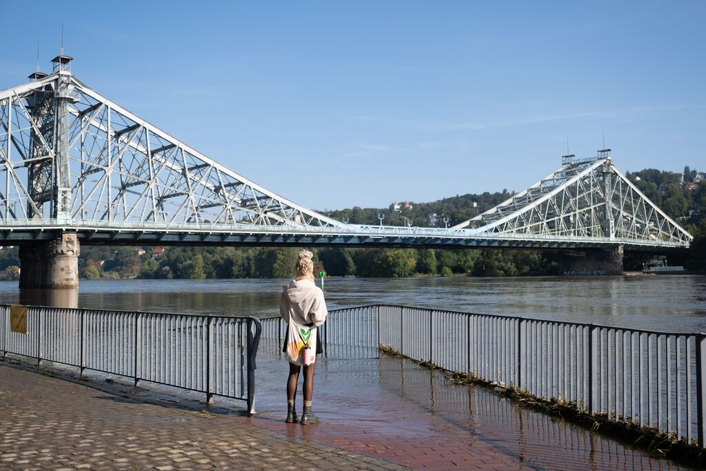 Viele liefen auf den Elbwiesen oder auch am Blauen Wunder entlang. Die Stadt Dresden bittet daher noch einmal darum, nicht zu nah ans Wasser, Sandsäcke oder Hochwasserschutzanlagen zu gehen.
