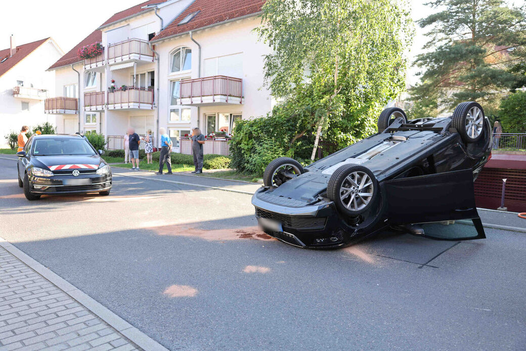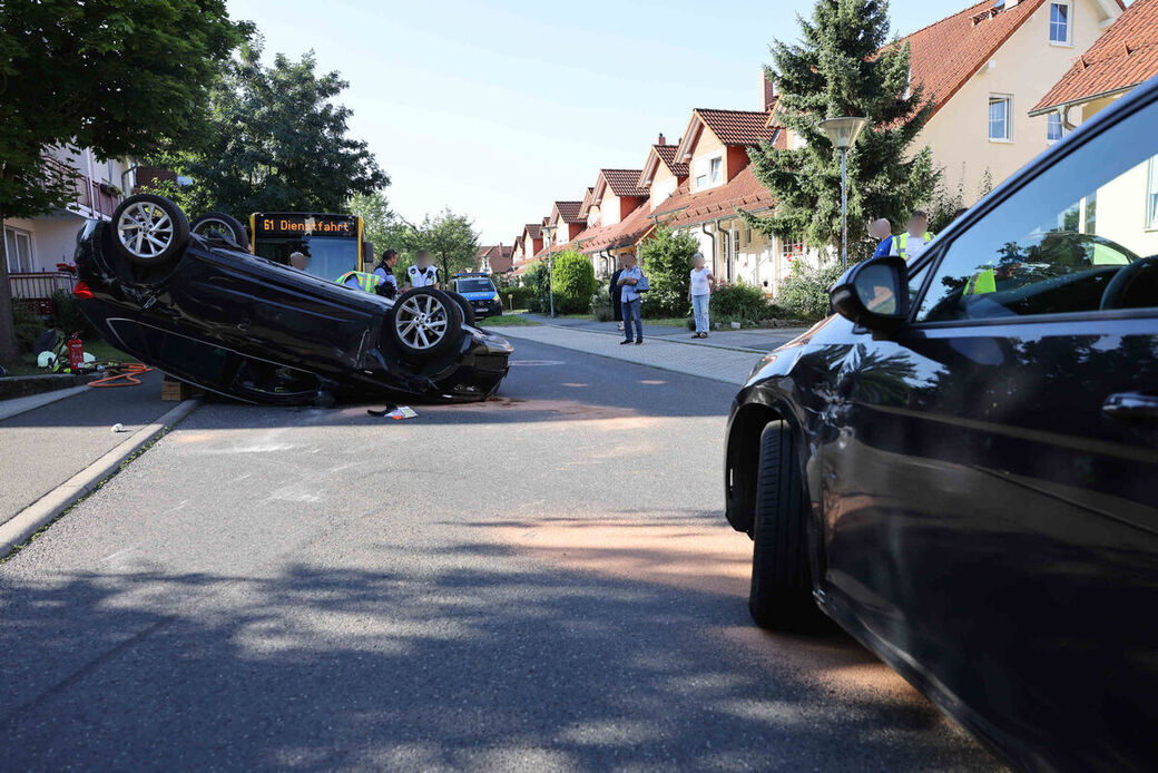 Dresden-Weißig: Auto landet auf dem Dach