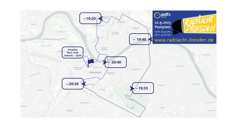 Der Fahrradkorso kommt voraussichtlich gegen 20:50 Uhr wieder auf dem Postplatz an, wo eine Abschlusskundgebung die Radnacht abrundet.