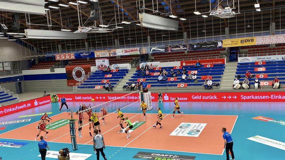Die Volleyballerinnen des Dresdner SC haben am Samstagabend einen deutlichen Erfolg in der Volleyball-Bundesliga gefeiert. Das Team von Trainer Alexander Waibl bezwang den USC Münster souverän mit 3:0 (25:14, 25:22, 25:16) und sicherte sich dadurch den zweiten Saisonsieg in Folge. Wegen der kurzfristig in Dresden verschärften Corona-Maßnahmen konnten nur 150 Zuschauer die Partie verfolgen. Ursprünglich hatte der Bundesligist die Genehmigung für 980 Besucher erhalten.