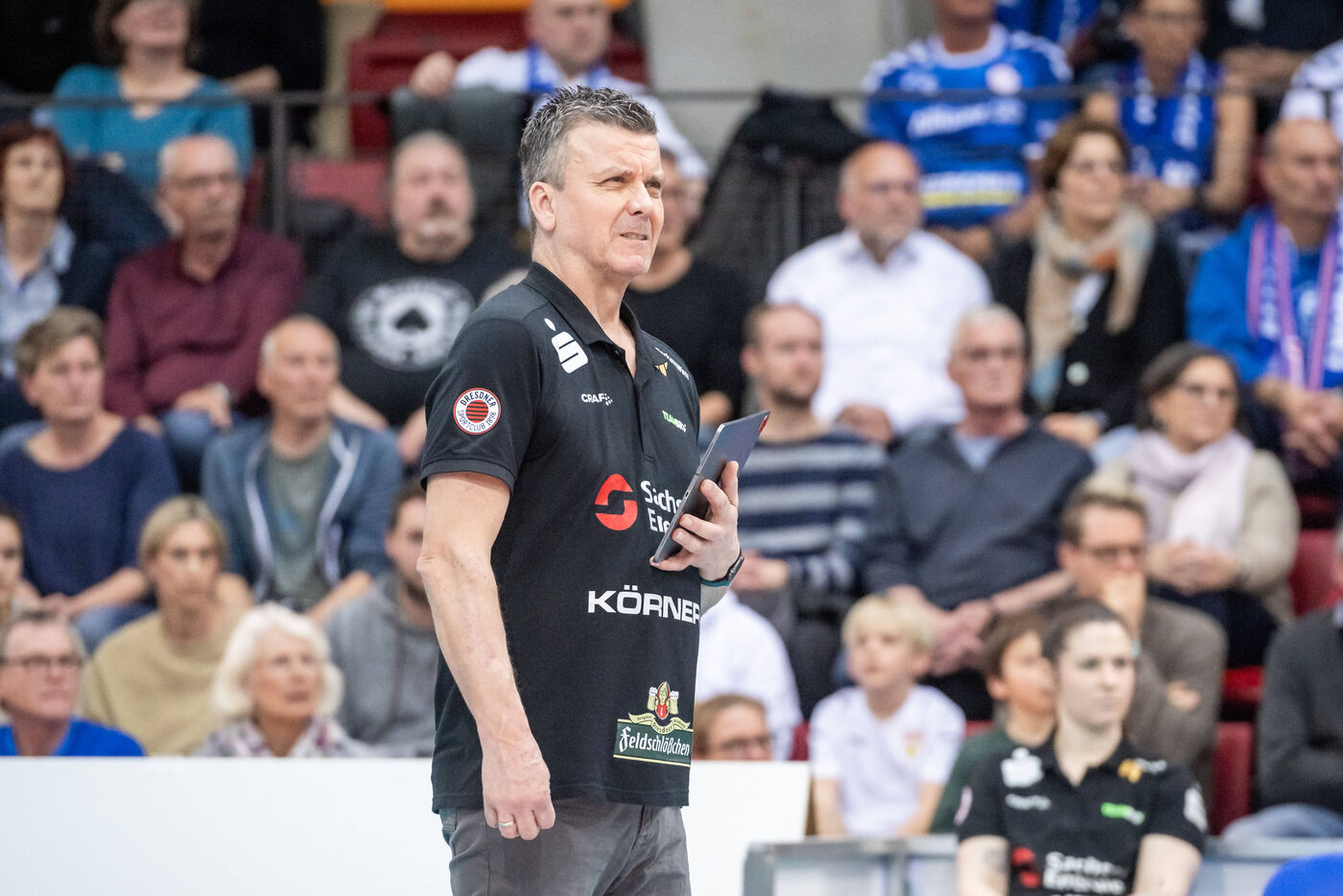 Die Volleyballerinnen des Dresdner SC sind im Kampf um die deutsche Meisterschaft nach der zweiten Niederlage in der Vorschlussrunde ausgeschieden. Das Team von Trainer Alexander Waibl musste sich am Samstag in der heimischen Arena im Playoff-Halbfinalspiel Titelverteidiger Allianz MTV Stuttgart deutlich mit 0:3 (18:25, 16:25, 16:25) geschlagen geben. Der Vorrundendritte hatte in der Best-of-three-Serie am Mittwoch bereits die erste Partie in Stuttgart mit 0:3 verloren.