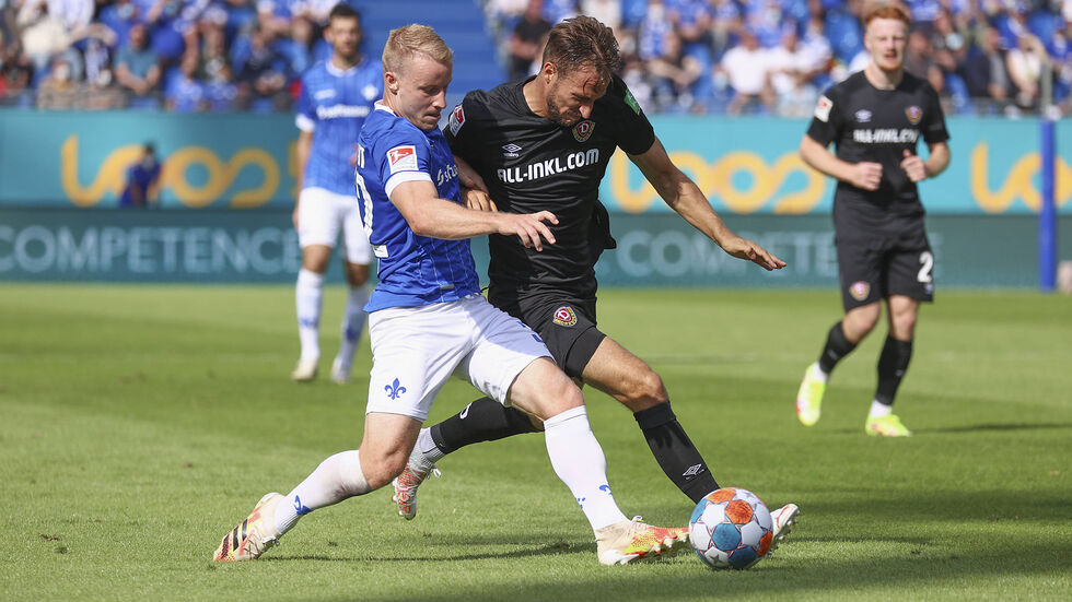 Dynamo hat in der 2. Bundesliga die dritte Niederlage in Serie hinnehmen müssen. Das Team von Alexander Schmidt unterlag trotz einer 64 Minuten währenden Überzahl mit 0:1 (0:1). Tobias Kempe (14.) erzielte vor 7020 Zuschauern im Merck-Stadion am Böllenfalltor das einzige Tor des Tages. Mitspieler Fabian Schnellhardt hatte zuvor bereits in der 8. Minute die Rote Karte gesehen. Dynamos Julius Kade musste in der 72. Minute mit Gelb-Rot vom Platz.