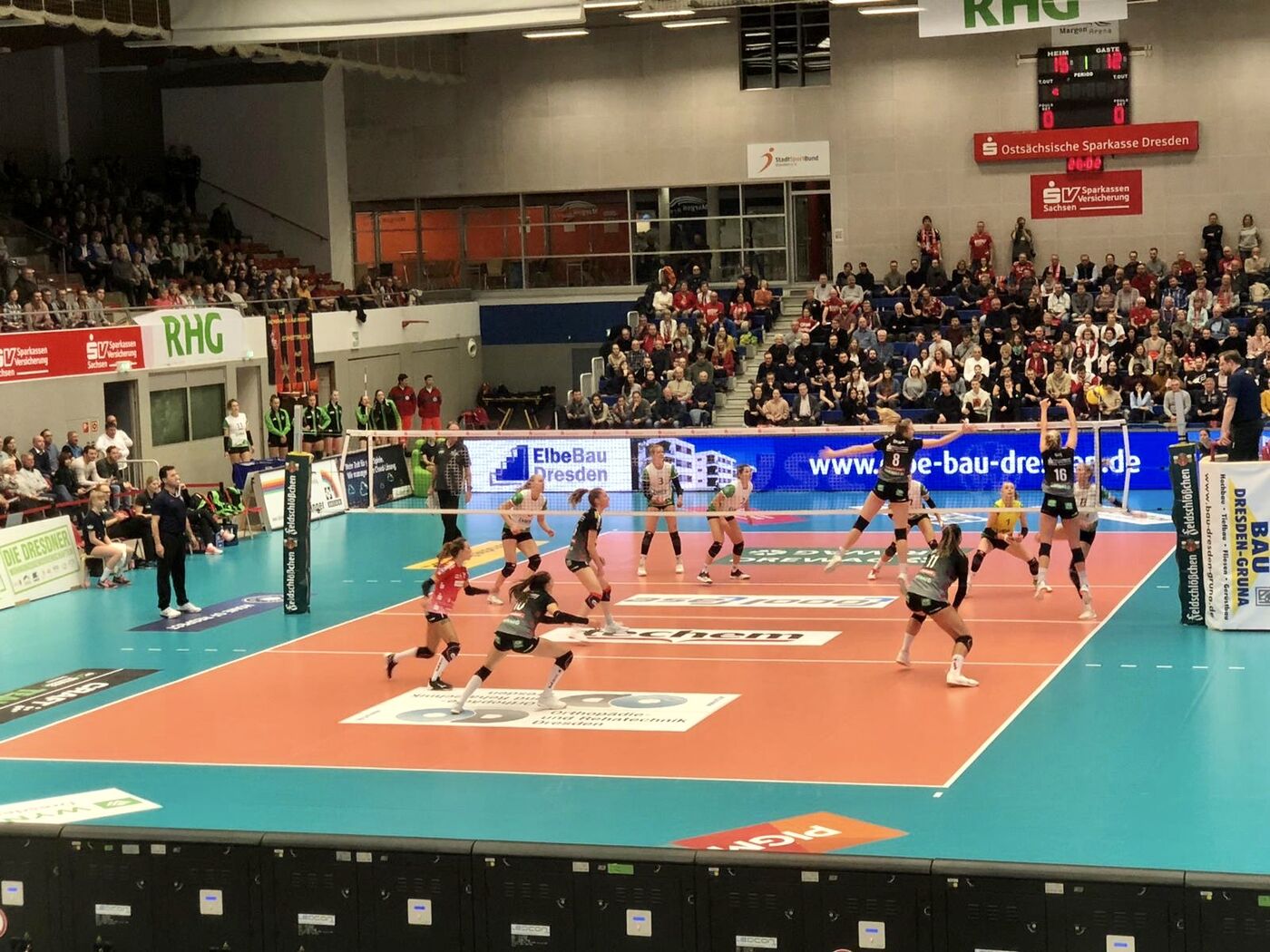 Die ersatzgeschwächten Dresdnerinnen, die mehrere Verletzungs- und Krankheitsausfälle zu beklagen hatten, starteten gut in den ersten Satz und führten phasenweise mit vier Punkten. Doch nach einigen Fehlern bei den Gastgeberinnen kämpfte sich der USC heran, bereitete dem DSC mit druckvollen Aufgaben und mutigen Angriffen Probleme. Im zweiten Abschnitt knüpfte Münster nahtlos an die Leistung an, während die Dresdnerinnen überhaupt keinen Rhythmus fanden, sich immer wieder viele Fehler leisteten. Der DSC-Coach versuchte es mit vielen Wechseln, aber das half nichts. Auch im dritten Durchgang dominierten der Tabellenachte aus Münster und konnte nach reichlich einer Stunde einen klaren Sieg feiern. Für den DSC war es das fünfte Spiel innerhalb von zwei Wochen.