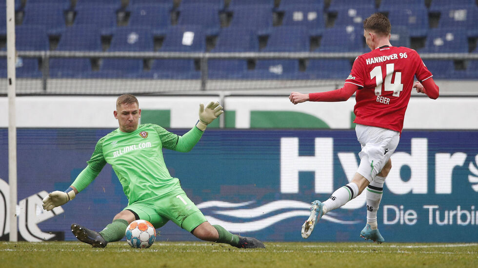 In der Anfangsviertelstunde waren beide Mannschaften um spielerische Elemente bemüht. Die Ausführung jedoch war häufig nur mangelhaft. Intensive Zweikämpfe dominierten die Partie in dieser Phase. Dynamo geriet immer wieder in Schwierigkeiten, wenn sich die Gastgeber schnell und flach durch die Schnittstellen in der Dresdner Abwehr kombinierten. So zum Beispiel beim Vorstoß von Linton Maina (21.). Der Hannoveraner tankte sich über die rechten Abwehrseite durch und prüfte SGD-Keeper Broll auf Nahdistanz. Dieser tauchte blitzschnell ab und parierte mit dem Fuß. Auch den Abstauber von Sebastian Kerk konnte Broll parieren.