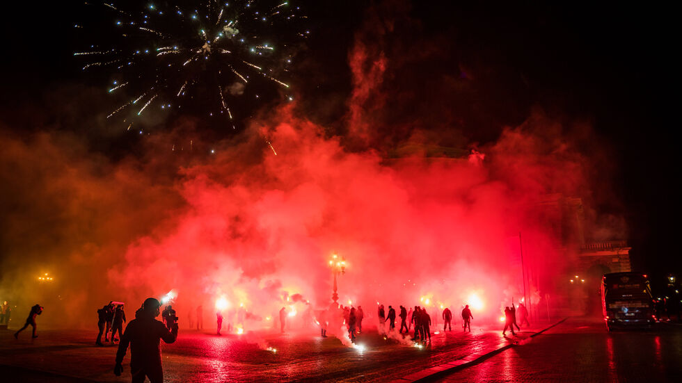 Dynamo-Fans empfangen Mannschaft mit Pyro-Show