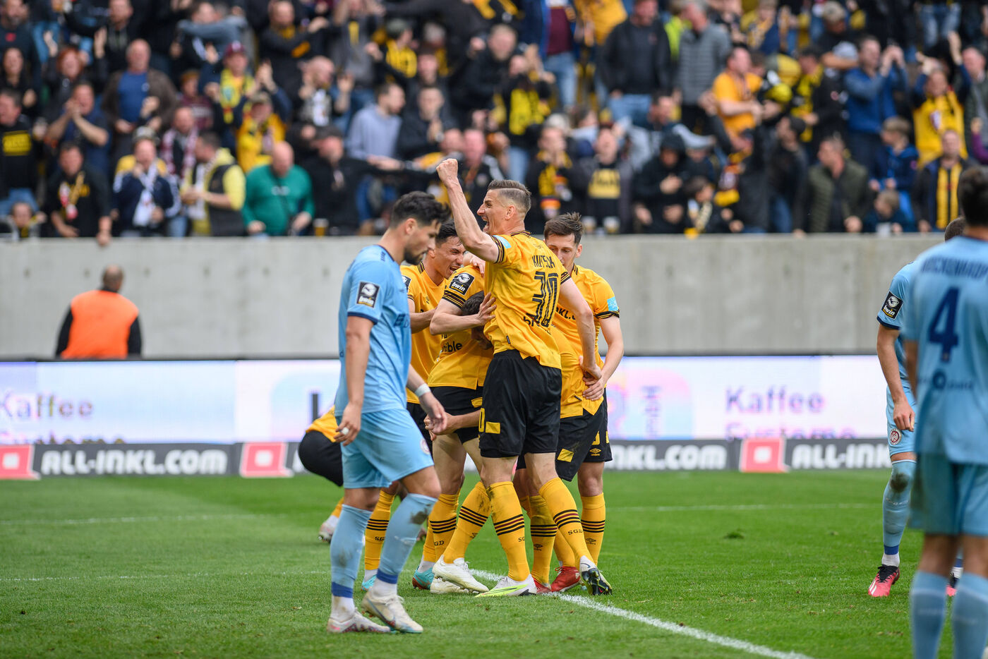In einem sehenswerten Topspiel besorgte Ahmet Arslan (11.) die Führung für die Hausherren. Ivan Prtajin (13.) glich per Strafstoß postwendend aus. Im zweiten Durchgang brachten Niklas Hauptmann (70.) und Jakob Lemmer (80.) die SGD auf die Siegerstraße. Durch den Heimerfolg klettern die Schwarz-Gelben zum ersten Mal in dieser Saison auf einen direkten Aufstiegsplatz.