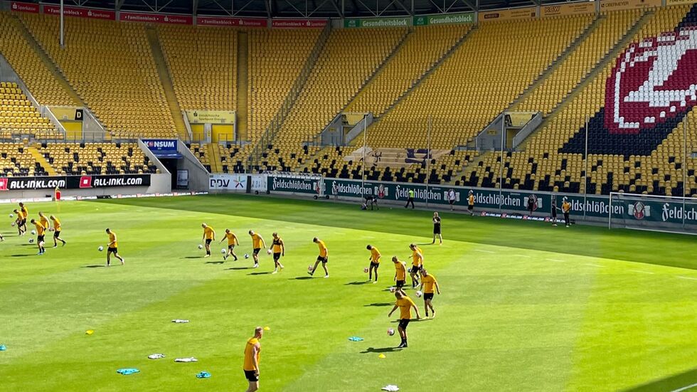 Die Dynamo-Spieler sind am Samstagnachmittag mit der ersten Trainingseinheit im Rudolf-Harbig-Stadion in die Sommervorbereitung auf die neue Zweitliga-Saison gestartet. Bei Temperaturen von 34 Grad versammelte Cheftrainer Alexander Schmidt insgesamt 22 Spieler vor gut 200 Fans im Stadion. Mit dabei waren auch zwei von drei Neuzugängen: Morris Schröter, der vom Drittligisten FSV Zwickau kam und Jong-min Seo aus der U19 von Bundesligist Eintracht Frankfurt trainierten erstmals im Trikot der SGD. Der Freiburger Luca Herrmann hat unterdessen noch eine weitere Woche Sonderurlaub vom Trainer erhalten.
