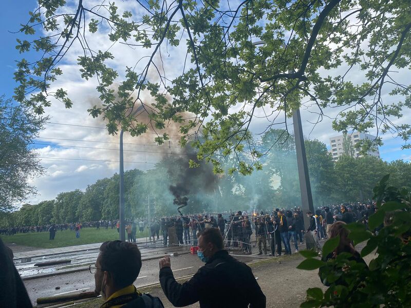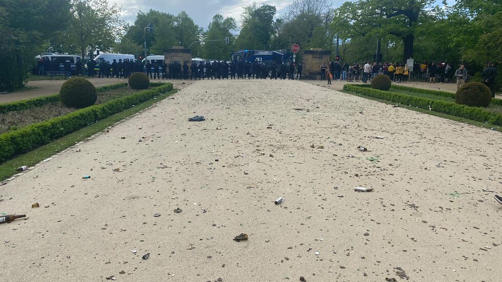 Die Situation rund um das Stadion soll sich wieder entspannt haben, wie die Polizei Sachsen twitterte. Auf der Lennéstraße haben Kriminaltechniker nach Beweismitteln gesucht und diverse Gegenstände sichergestellt.