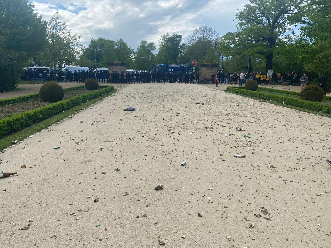 Die Situation rund um das Stadion soll sich wieder entspannt haben, wie die Polizei Sachsen twitterte. Auf der Lennéstraße haben Kriminaltechniker nach Beweismitteln gesucht und diverse Gegenstände sichergestellt.