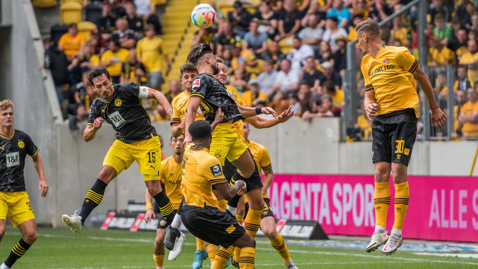 Dynamo hat das Testspiel gegen den Bundesliga-Zweiten Borussia Dortmund am Samstagabend mit 0:2 (0:2) verloren. BVB-Kapitän Mats Hummels hatte die Gäste in der 13. Minute in Führung gebracht. Kurz vor der Pause konnte Antonios Papadopoulos (41.) den Vorsprung ausbauen. Im zweiten Abschnitt wechselten beide Mannschaften kräftig durch, das Spielgeschehen verflachte etwas. Nichtsdestotrotz wurde den 23 816 Zuschauern ein zu jeder Zeit unterhaltsamen Schlagabtausch geboten.