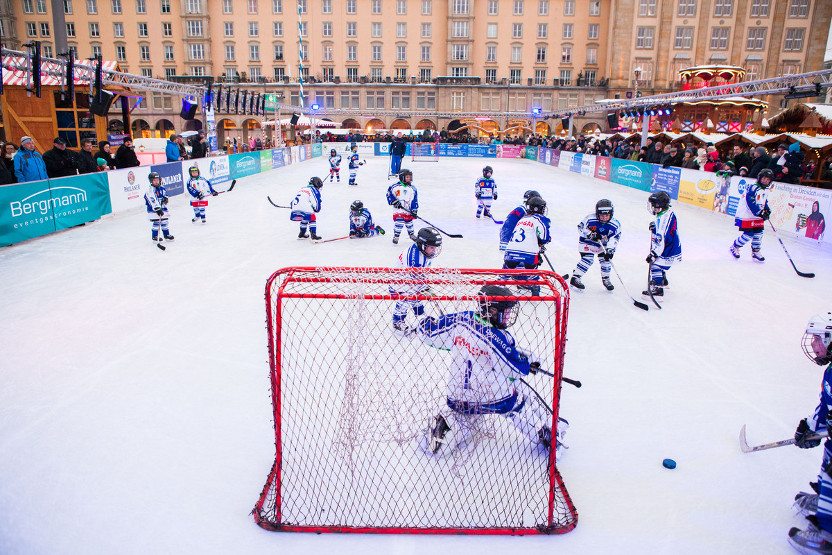 Sonntag ist der letzte Tag des Dresdner Winterzaubers. Ab 14.30 Uhr läuft die Eishockeyshow der Bambinis vom Eissportclub Dresden.