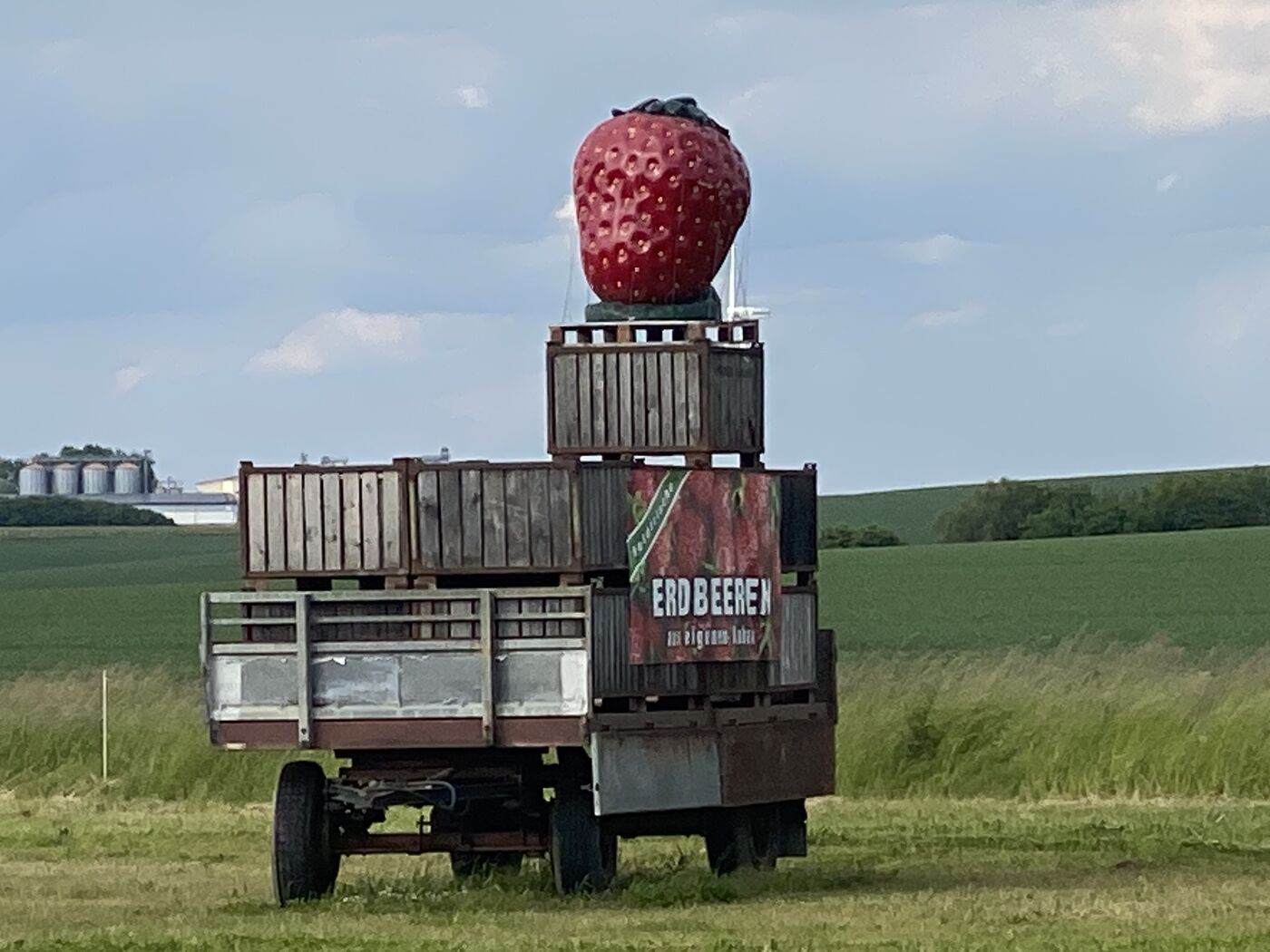 - Durch die großen Erdbeer-Figuren sieht man schon von weitem, wo es frische Früchtchen (zum Selberpflücken) gibt.