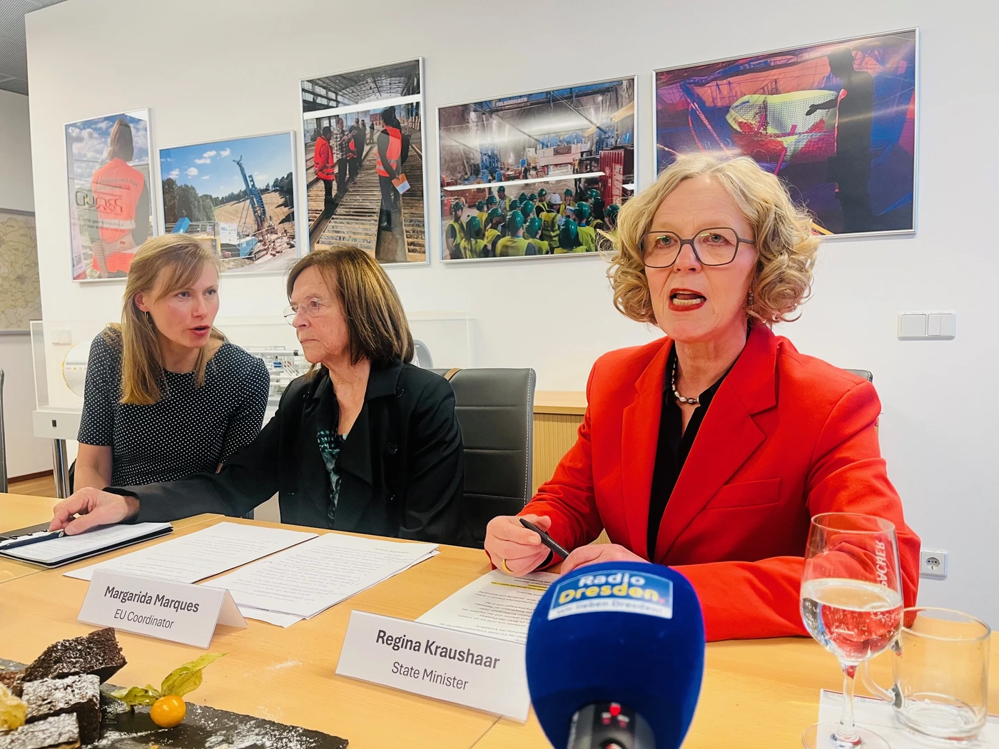- Sachsens Infrastrukturministerin Kraushaar traf EU-Koordinatorin Marquez (Mitte) mit ihrer Dolmetscherin