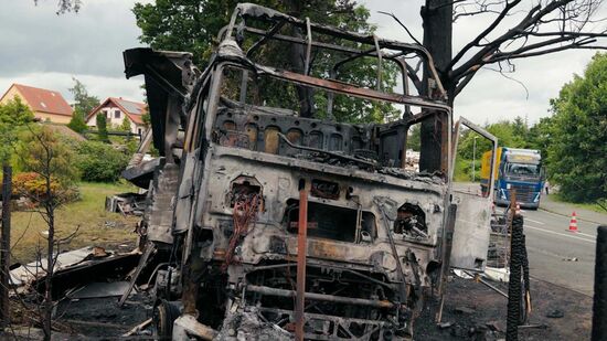 Am Kronenberg in Medingen bei Ottendorf-Okrilla (Landkreis Bautzen) ist am Donnerstagabend ein LKW in Flammen aufgegangen. Der Feuerschein war weithin zu sehen. Anwohner berichteten von mehreren Explosionen.