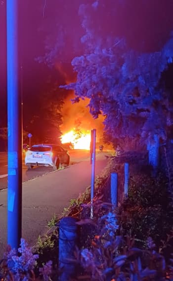 Am Kronenberg in Medingen bei Ottendorf-Okrilla (Landkreis Bautzen) ist am Donnerstagabend ein LKW in Flammen aufgegangen. Der Feuerschein war weithin zu sehen. Anwohner berichteten von mehreren Explosionen.