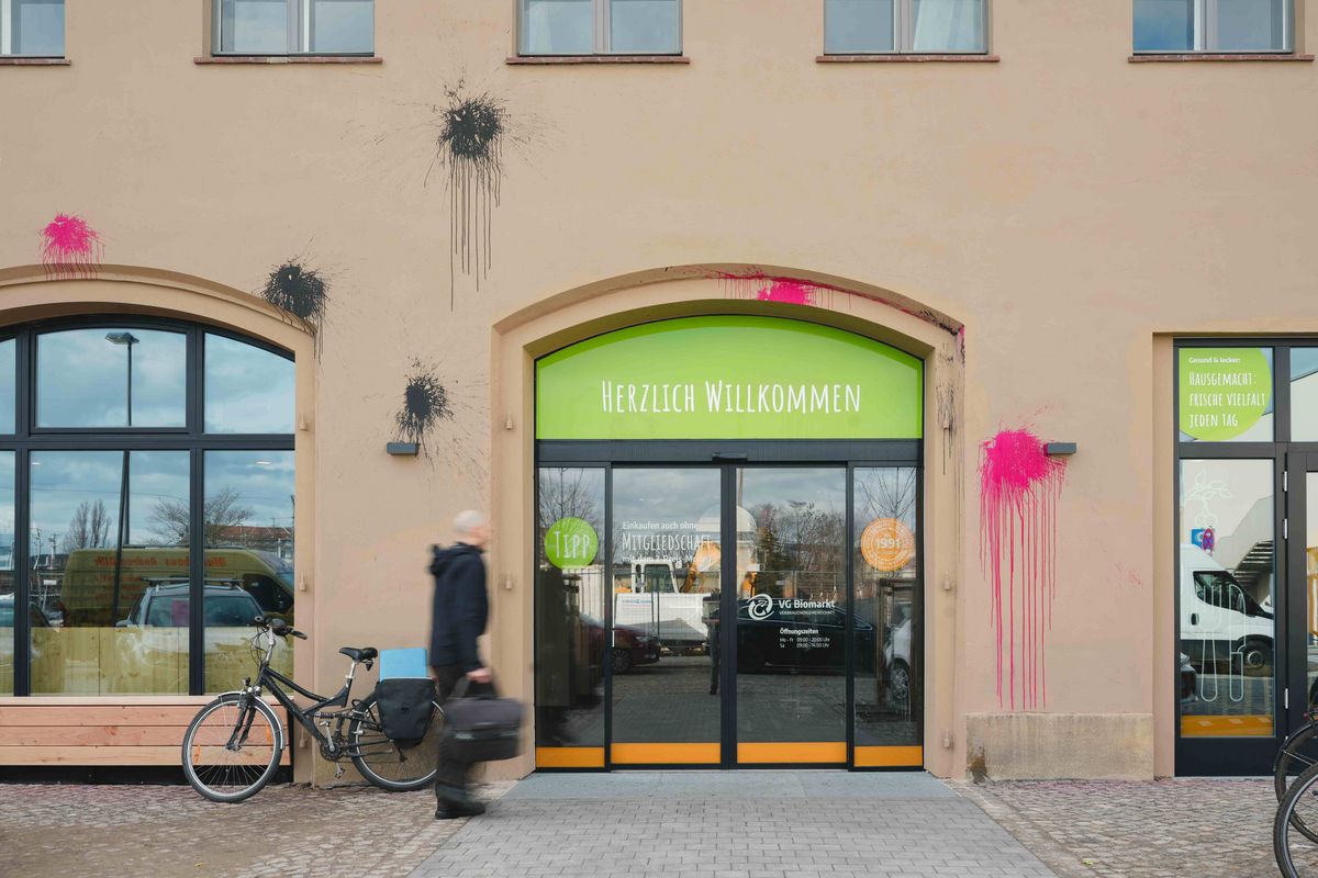 - Der neue Bio-Supermarkt in Dresden wurde noch in der Eröffnungsnacht mit Farbbeuteln attackiert.
