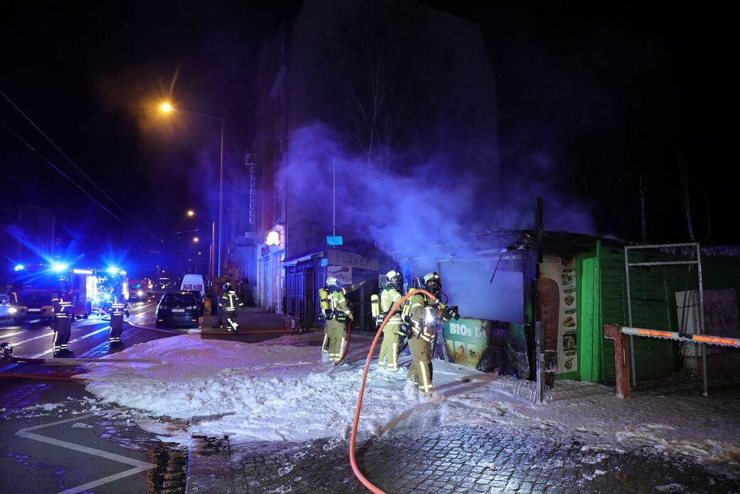Die Feuerwehr ist am Donnerstagmorgen zur Lockwitzer Straße nach Strehlen ausgerückt. Wie uns ein Polizeisprecher sagte, war kurz nach 4 Uhr der Brand eines Döner-Imbiss gemeldet worden. Beim Eintreffen der Rettungskräfte stand der Imbiss demnach im Vollbrand. Mehrere Trupps unter Atemschutz nahmen nach Angaben der Feuerwehr mit drei Strahlrohren die Brandbekämpfung auf. Dabei kam auch Löschschaum zum Einsatz.