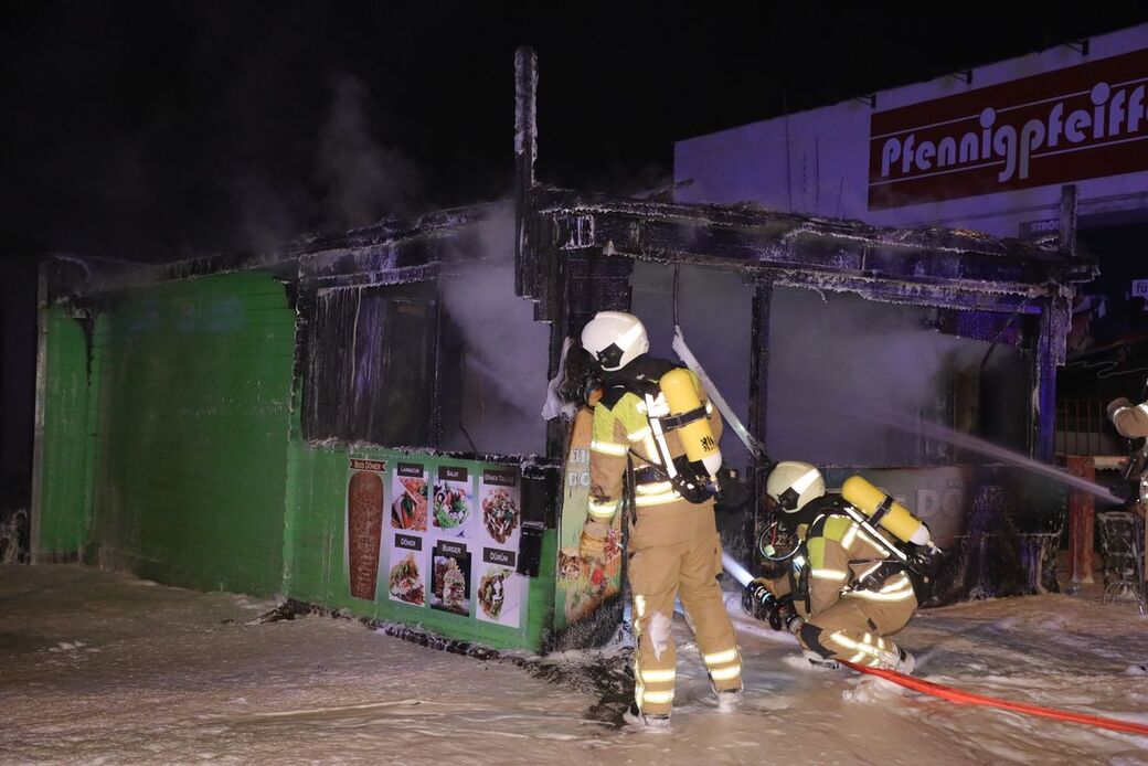 Polizei sucht in abgebrannter Dönerbude nach Spuren