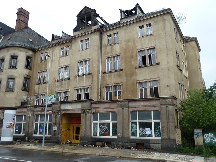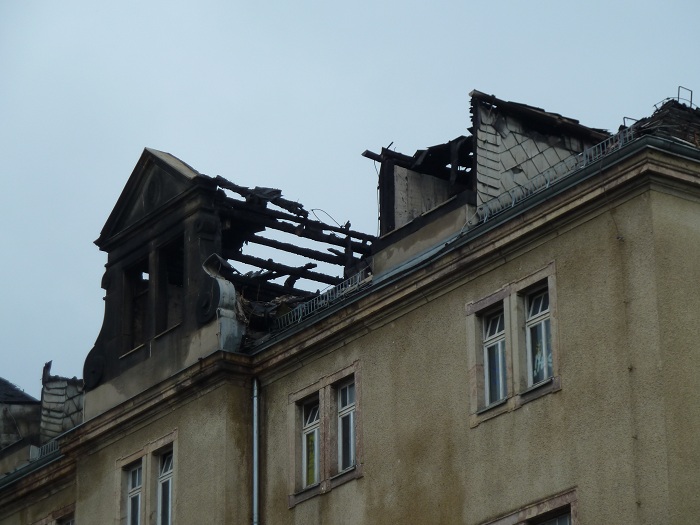 Das Feuer im ehemaligen Haus Einheit an der Zwickauer Straße ist gelegt worden. Die Ermittler der Kripo fanden in dem Gebäude mehrere Brandstellen, von dort hatten sich die Flammen über den rechten Teil des Dachstuhls ausgebreitet. Zeugen hatten gegen Mitternacht beobachtet, wie zwei Vermummte in das leerstehende Haus eingedrungen waren. Kurze Zeit später stand das Dach lichterloh in Flammen. Die Feuerwehr brauchte zwei Stunden, um den Brand zu löschen. Insgesamt waren mehr als 60 Kameraden mit drei Drehleitern im Einsatz. Menschen wurden bei dem Feuer nicht verletzt. Der Sachschaden könne noch nicht beziffert werden, sagte eine Polizeisprecherin. Die Zwickauer Straße musste bis zum Mittag gesperrt werden, weil Teile des Gebäudes auf die Fahrbahn gestürzt waren. Das denkmalgeschützte Haus mit Festsaal steht seit rund zehn Jahren leer. Es hat aber eine traditionsreiche Geschichte. Gebaut wurde es vor über hundert Jahren. Zunächst war es Volkshaus der Gewerkschaften, nach 1945 wurde es zum „Klubhaus Fritz Heckert“ umgebaut. Jeder alteingesessene Chemnitzer verbindet damit Erinnerungen an Kindheit und Jugend. In dem Kulturhaus gab es Konzerte, Tanzstunden, Bälle und Diskos. Auch nach der Wende ging der Betrieb weiter: der Verein Kraftwerk e.V. zog ein und nutzte das Haus bis 2002. Seitdem steht der Komplex leer.