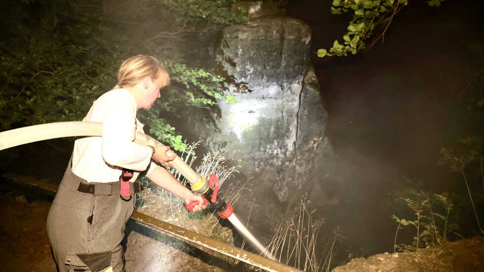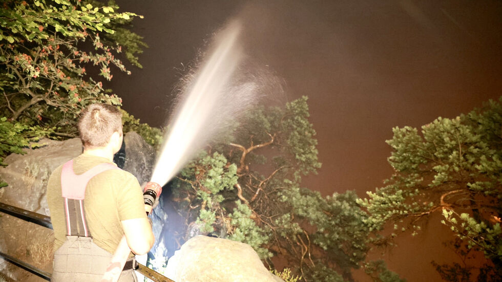 Im Nationalpark Sächsische Schweiz ist die Feuerwehr seit der Nacht zu Montag im Großeinsatz. Unterhalb der Basteibrücke wurde gegen 0:30 Uhr ein Feuer gemeldet. In dem steilen Gelände war ein Wald- bzw. Waldbodenbrand ausgebrochen. Die Feuerwehr versuchte von unten und von oben zu löschen, dabei kam auch die Höhenrettung der Freiwilligen Feuerwehr Heidenau zum Einsatz.