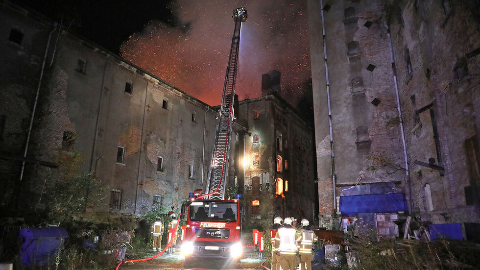 Nach dem Großbrand in Niedersedlitz ermittelt die Polizei wegen Brandstiftung. In der alten Malzfabrik ist in der Nacht zum Donnerstag Feuer ausgebrochen. Gegen 02:30 Uhr wurde die Polizei informiert, sagte uns ein Sprecher im Lagezentrum. Die Feuerwehr rückte mit einem Großaufgebot zu der Industrie-Ruine auf der Straße des 17. Juni aus. Fast 90 Kameraden waren im Einsatz. Funkenflug und Einsturzgefahr erschwerten die Löscharbeiten. Zwei Fabrik-Gebäude standen in Flammen.