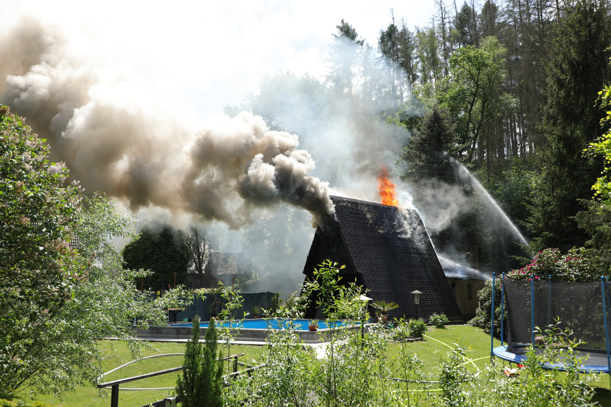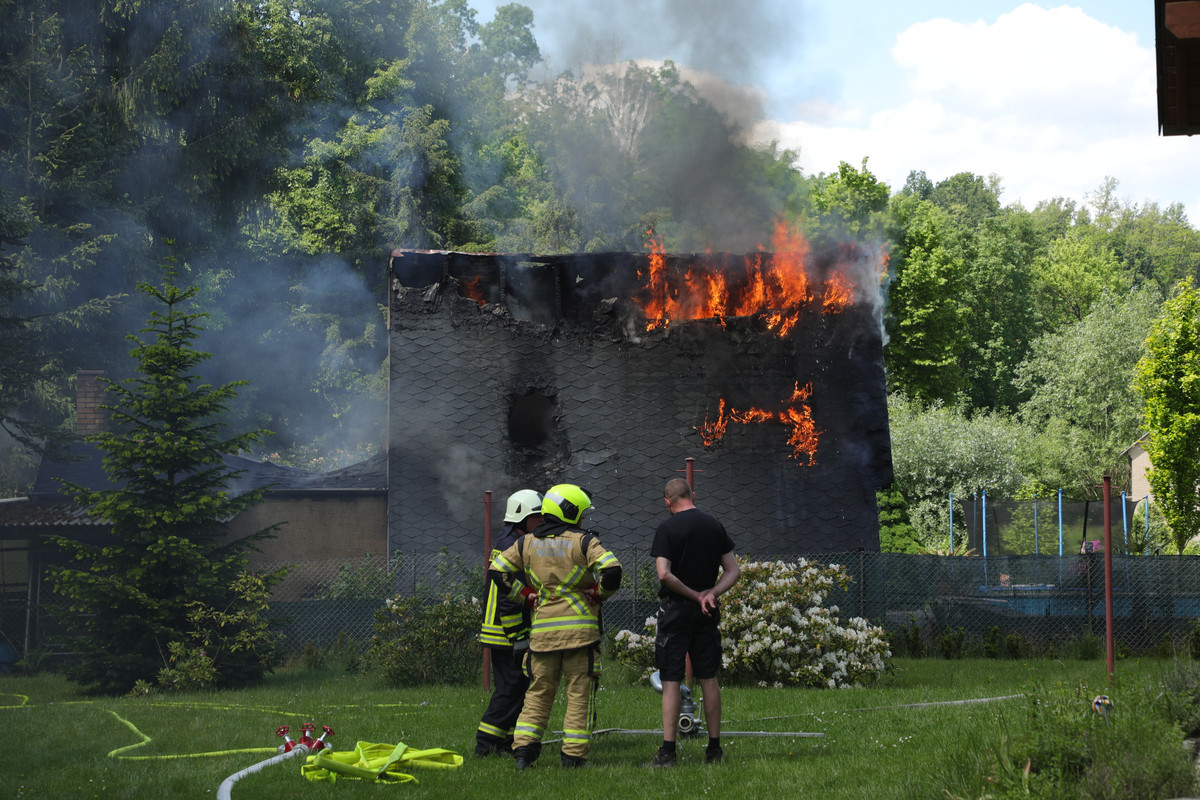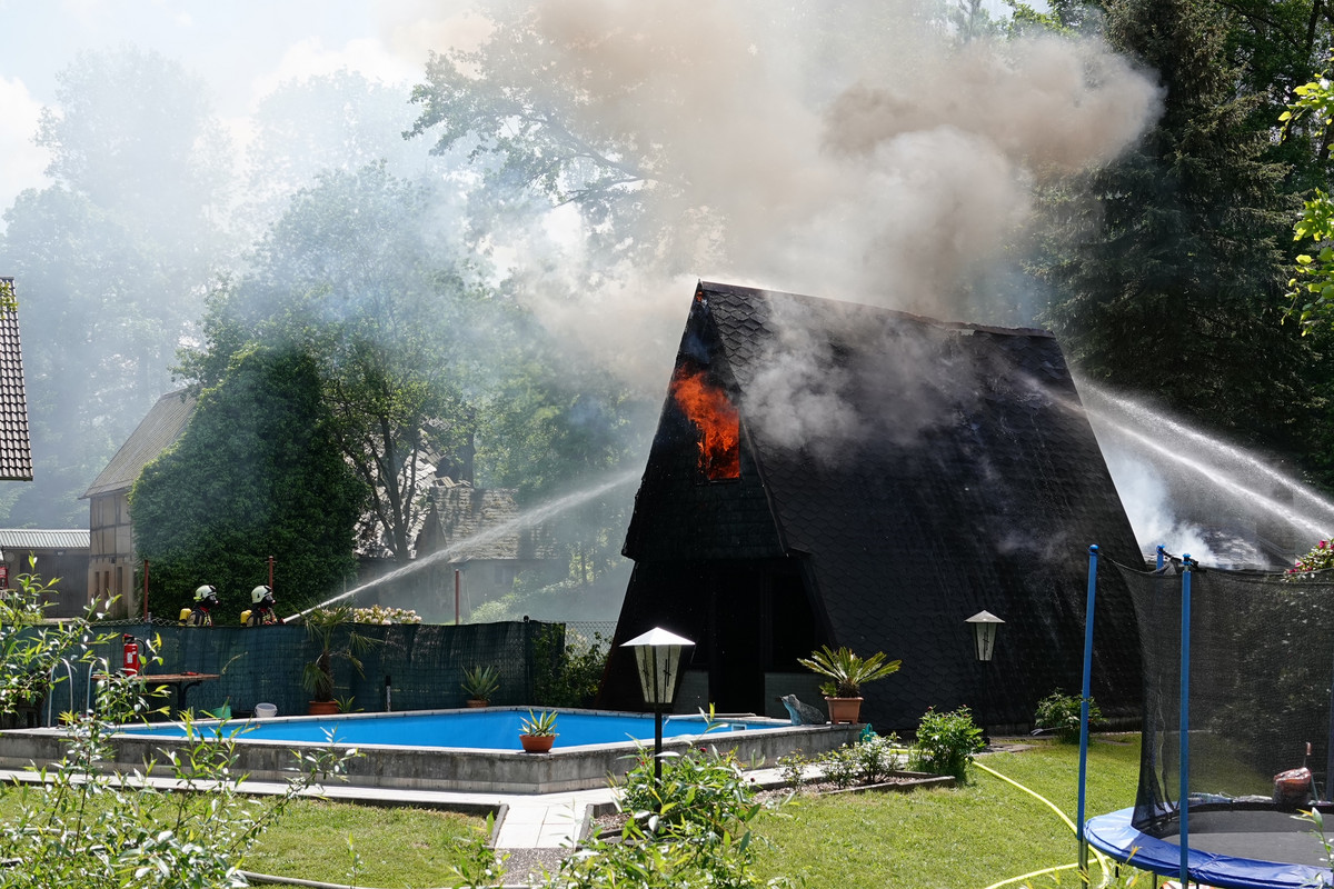 In Munzig im Kreis Meißen hat es am Sonntagmittag gebrannt. In einer Finnhütte war aus noch unbekannter Ursache Feuer ausgebrochen. Beim Eintreffen der Wehren aus Klipphausen, Nossen und Wilsdruff stand das Häuschen schon lichterloh in Flammen. Mit mehreren Strahlrohren löschten die Feuerwehrleute den Brand. Nach Informationen unseres Reporters mussten über über 1,6 Kilometer Schläuche gelegt werden, um aus der Triebisch Löschwasser zu pumpen. Verletzt wurde niemand. Die Schadenshöhe ist derzeit noch nicht bekannt. Etwa 90 Einsatzkräfte waren vor Ort.