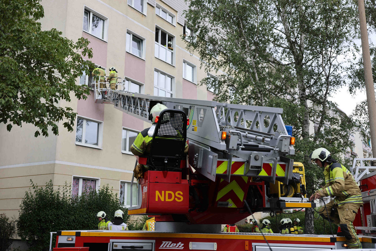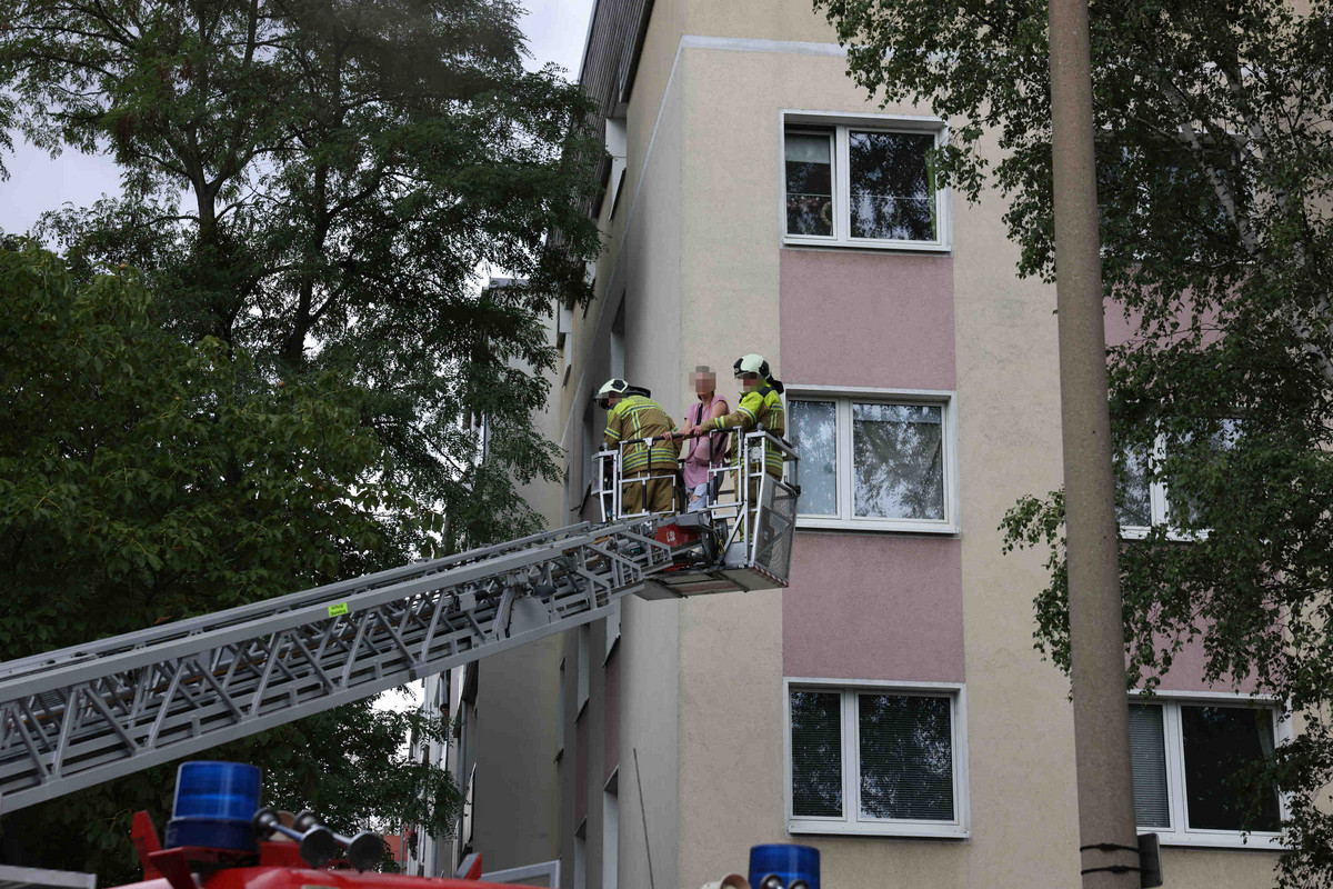 - Mit einer Drehleiter wurden mehrere Personen in Sicherheit gebracht.