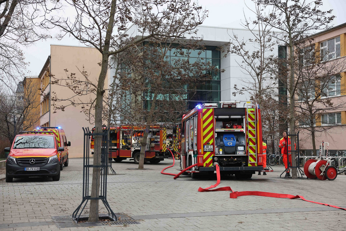 Die Feuerwehr musste am Freitagmittag zur 101. Oberschule „Johannes Gutenberg“ an der Pfotenhauer Straße ausrücken. Dort war auf einer Toilette ein Brand ausgebrochen. Schwarzer Rauch breitete sich aus und drang über die Fenster nach draußen.