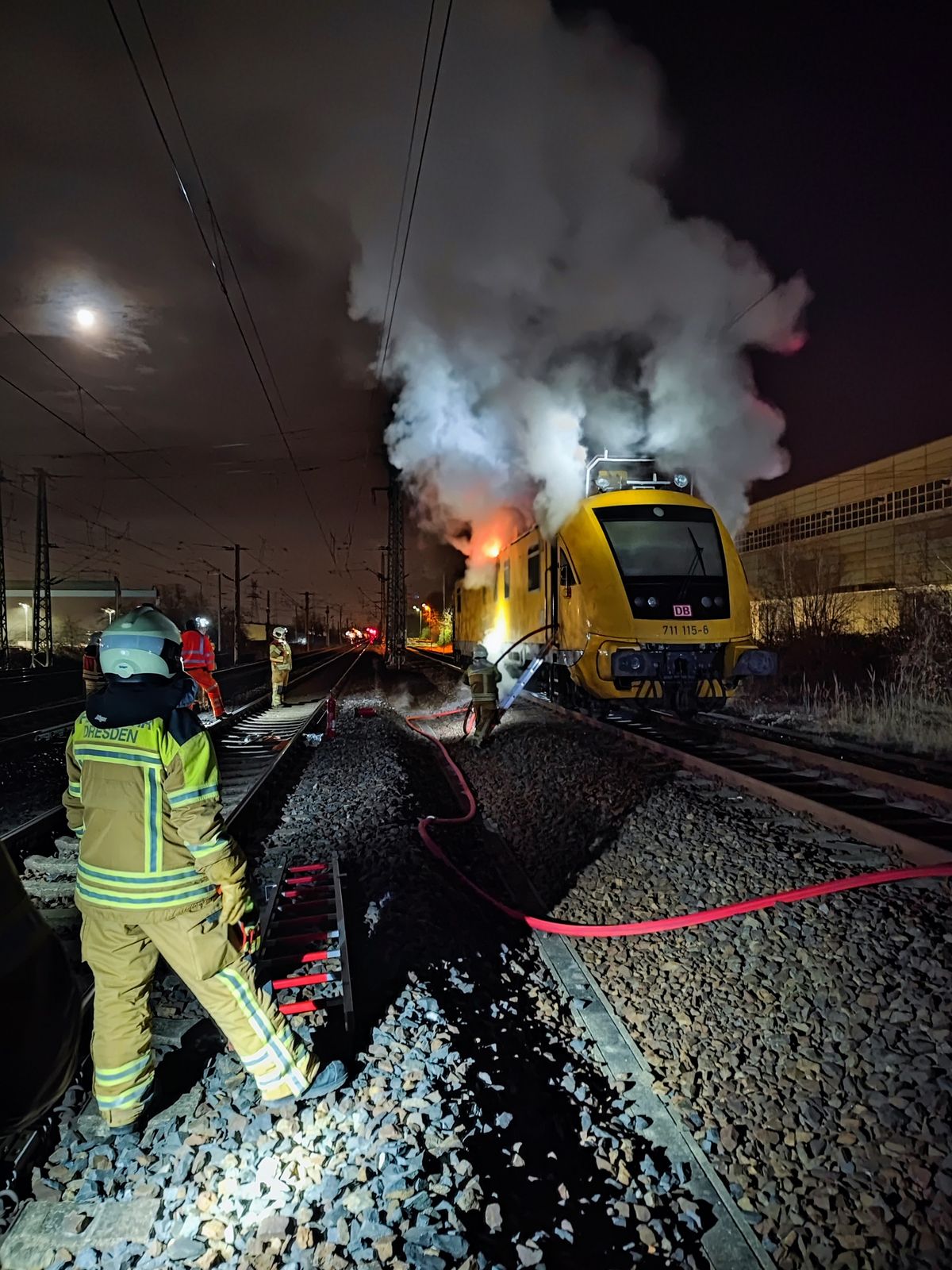 Feuerwehr löscht brennende Lokomotive in Dresden