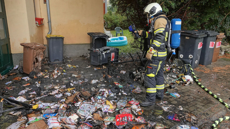 In Freital musste die Feuerwehr am Donnerstagvormittag mehrere brennende Mülltonnen löschen. Sie standen im Hinterhof eines Mehrfamilienhauses an der Dresdner Straße.