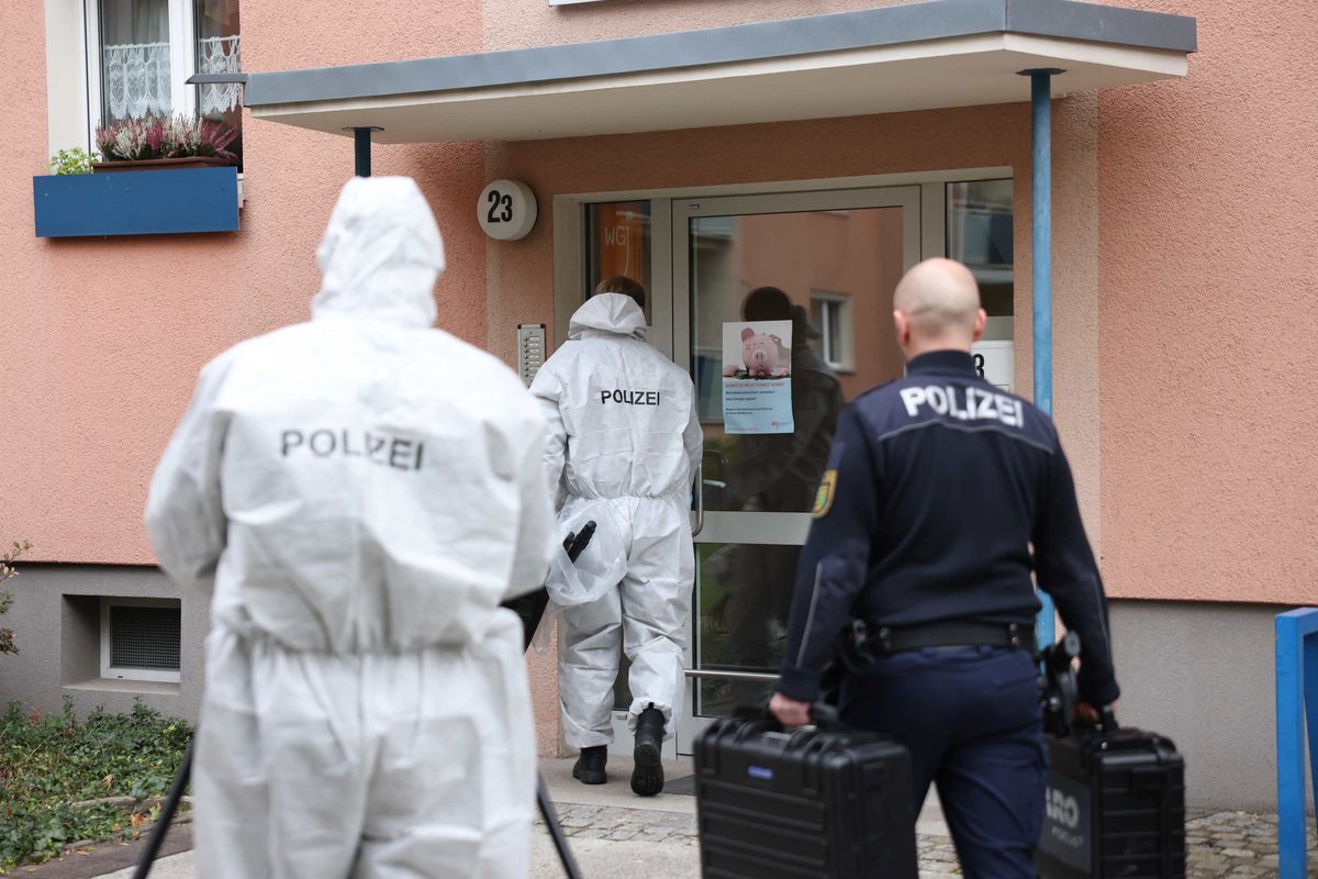 - Kriminaltechniker auf dem Weg zum Tatort in Striesen.