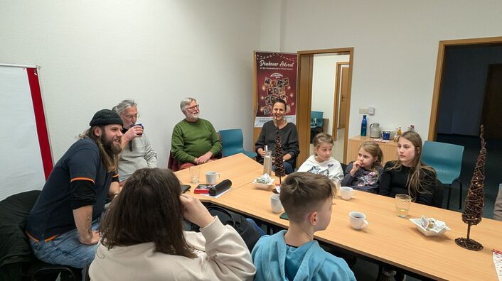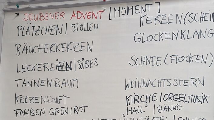 Die ersten Ideen für das neue Weihnachtslied wurden bereits im Januar gesammelt. Im Stadtteilbüro Deuben hatten Quartiersmanagerin Anja Fischer und Musiker "Whysker" interessierte Kinder und Eltern zu Punsch und Plätzchen eingeladen. In gemütlicher Runde wurde alles aufgeschrieben, was auf jeden Fall im Text vorkommen sollte.