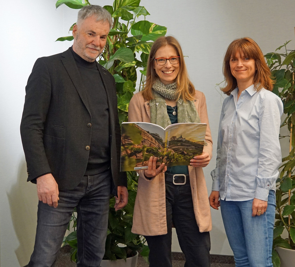 - Geschäftsführerin Sindy Vogel (Mitte) begrüßt Freital als neues Mitglied im Tourismusverband Elbland Dresden. Oberbürgermeister Uwe Rumberg (links) und Kathleen Gerold (rechts), verantwortlich für das Stadtmarketing, freuen sich auf die Zusammenarbeit.