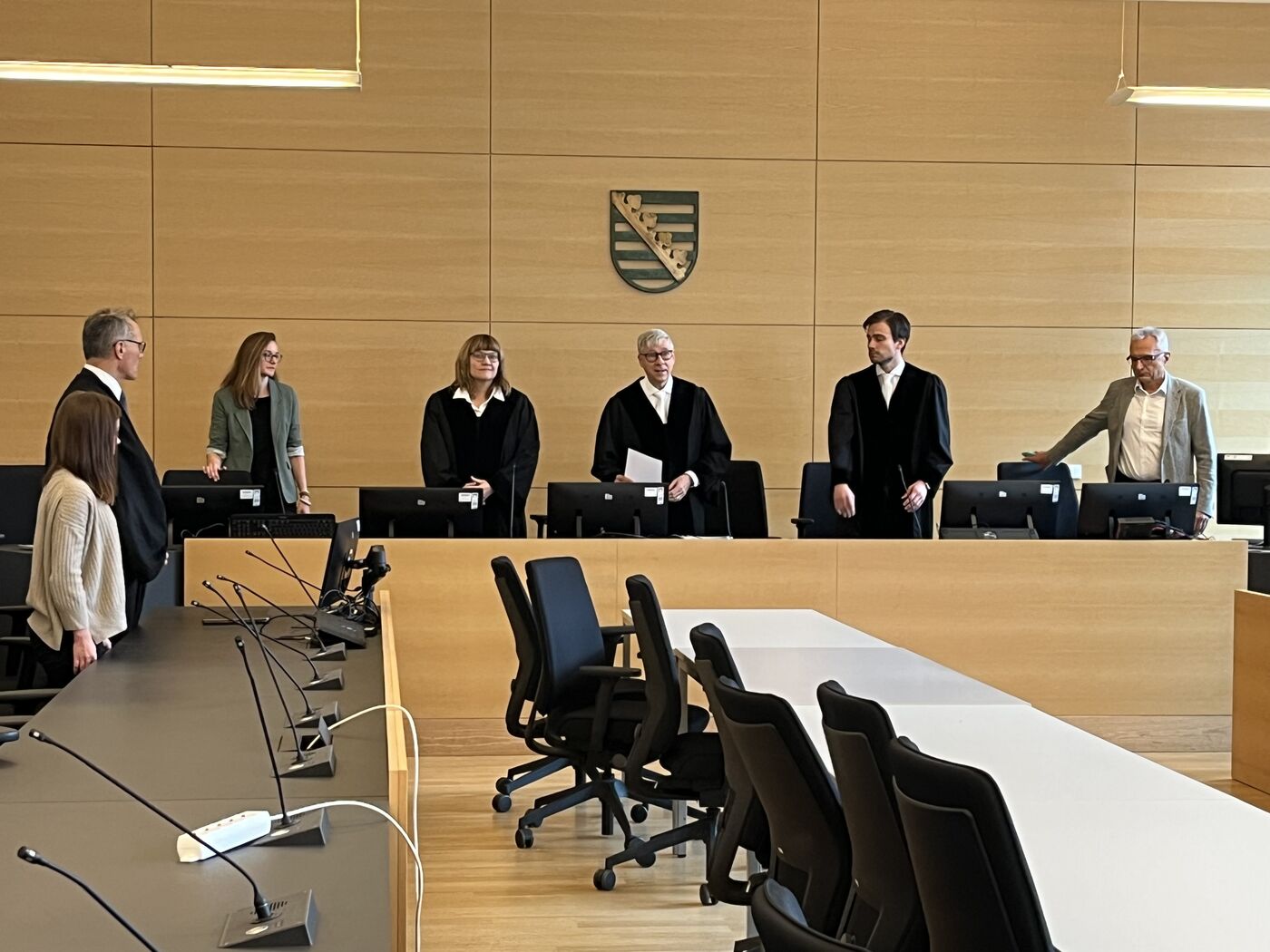 - Lisa (li.) und ihr Anwalt erheben sich zur Urteilsverkündung am Landgericht Dresden