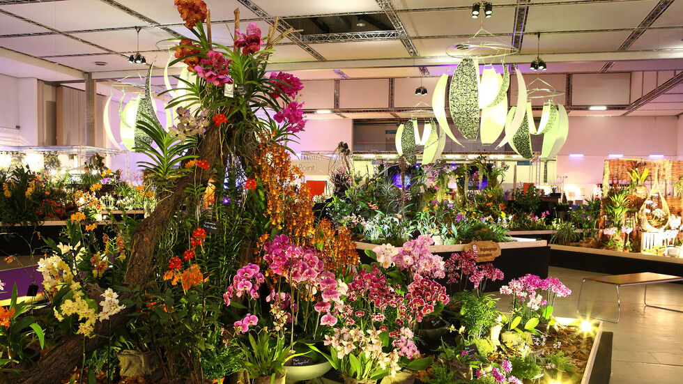 In Halle 1 können Besucher einer der größten und bedeutendsten Orchideenschauen Europas erleben. Hunderttausend Blüten aus aller Welt sind beeindruckend und abenteuerlich arrangiert.
