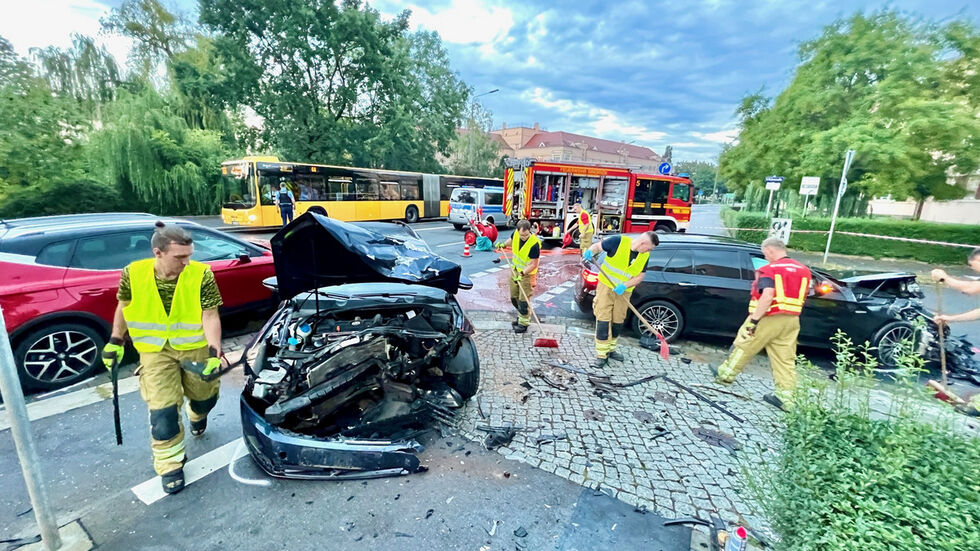 Auf der Teplitzer Straße hat es am Dienstagabend einen schweren Unfall gegeben. Wie uns ein Polizeisprecher sagte, hatte der Fahrer eines Mercedes AMG gegen 18:10 Uhr auf regennasser Fahrbahn die Kontrolle verloren. Der 33-Jährige geriet stadtauswärts in Höhe der Uhdestraße auf die Gegenfahrbahn und stieß dort mit einem Passat und mit einem Seat zusammen.