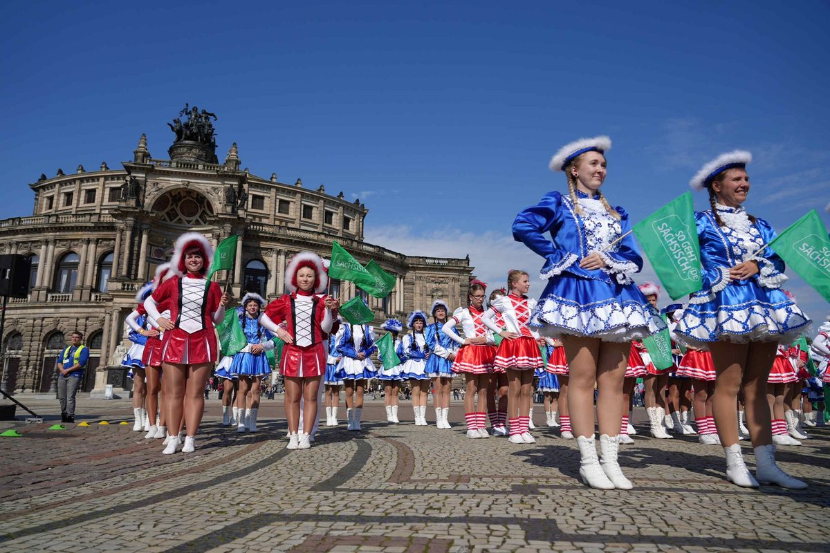 Vor der Semperoper in Dresden haben Funkengarden aus ganz Sachsen am Sonntag einen neuen Weltrekord aufgestellt: Die „Größte Tanz-Garde Outdoor“. 381 Teilnehmer* galt es zu knacken. Das wurde mit 1.136 Tänzerinnen und Tänzern auf dem Theaterplatz locker geschafft. Mehr als 80 Vereine aus dem ganzen Freistaat waren angereist.